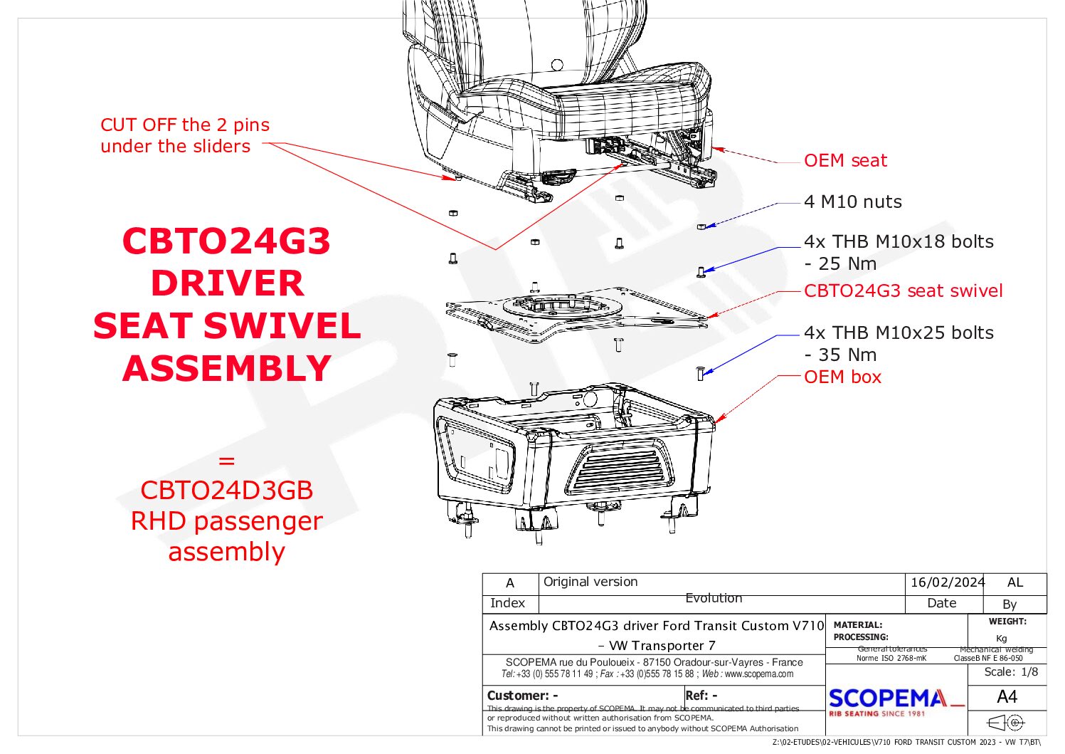 RIB VW Transporter T7 Driver’s Side Seat Swivel – 2024 Onward