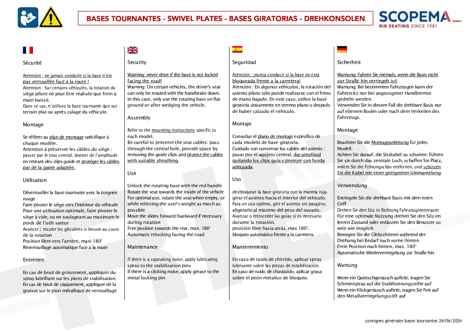 Important point on the use of RIB products: The rotation of our swivels has to be done with nobody on the seat.